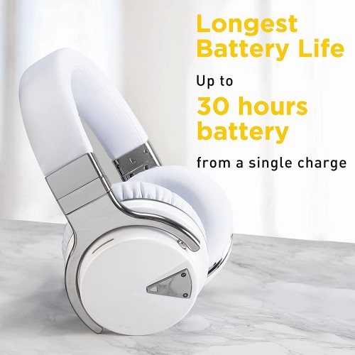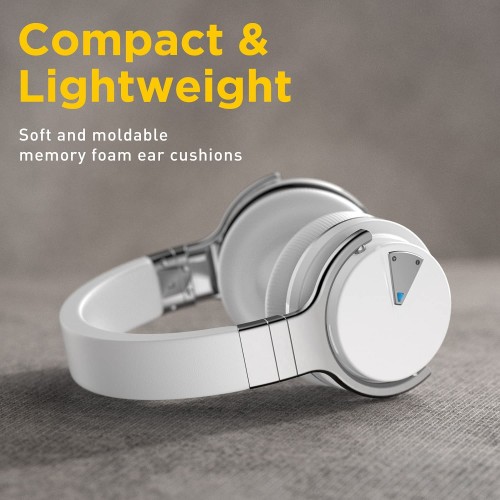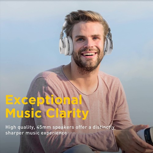 Reverbix E7 Noise Canceling Headphones Overhead Bluetooth Headphones with Mic for Phone-Call, Comfortable Wireless Headphones & Light Weight, Deep Bass, 35-Hour Battery Life, White